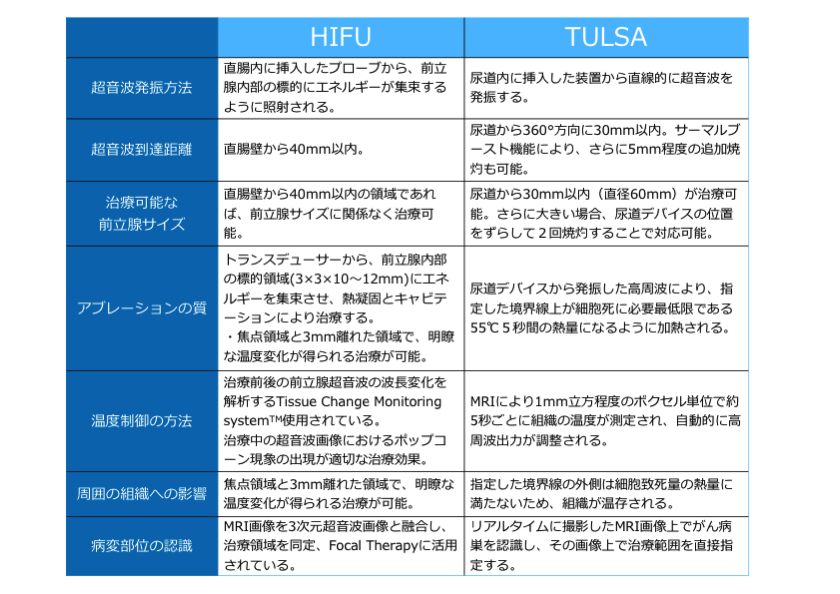 *TULSAの治療成績は当院データ、HIFUの治療成績は東海大学泌尿器科 小路直先生よりご提供